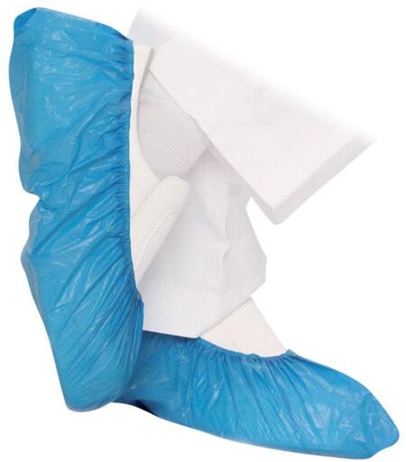 Copriscarpe Monouso In Polietilene Blu - Confezione Da 100 Pezzi Copriscarpa Monouso Di Colore Azzurro In Polietilente Da 3.2 Gr/pc, Elasticizzato Nella Parte Superiore Per Aderire Al Meglio Alle Caviglie; Impermeabile E Con Superficie Goffrata. Ideali Per Mantenere L'Igiene Di Centri Estetici, M ...