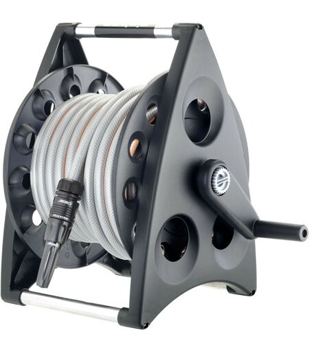 CLABER Kiros kit, avvolgitubo manuale da giardino in plastica e alluminio, portatile installabile a parete con tubo e lancia -