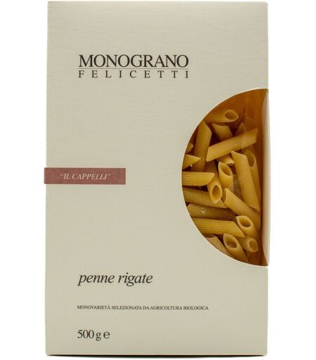 Pasta Felicetti Penne Rigate Monograno Cappelli Gr 500 sono una pasta di alta qualità, realizzata con semola biologica di grano duro Senatore Cappelli e acqua pura delle Dolomiti. 500 grammi ...