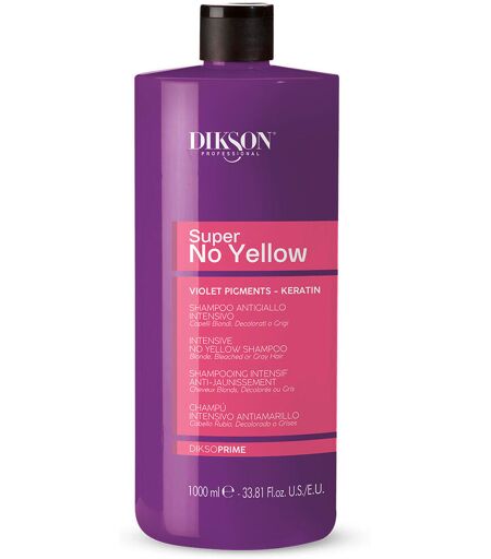 Shampoo intensivo No Yellow per capelli biondi, decolorati o grigi. Con pigmenti viola, cheratina e proteine del riso. Deterge efficacemente e rimuove i riflessi gialli indesiderati per un biondo cenere freddo o un biondo platino. Azione super rapida per capelli porosi e grigi. Dona elasticità e lucentezza. Applicazione: Applicare sui capelli bagnati, massaggiare e lasciare in posa da 1 a un massimo di 5 minuti. Risciacquare bene. ...