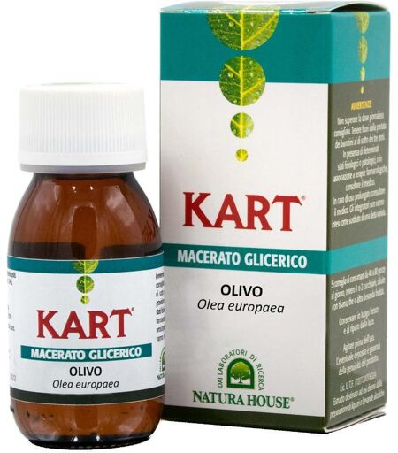 KART - MACERATO GLICERICO - OLIVO - Descrizione Integratore alimentare di piante officinali. Kart utilizza solo gemme o getti freschi da piante medicinali coltivate o spontanee e selezionate in base alla vocazione del territorio di provenienza, controllate e garantite all’origine per purezza e ricc… ...
