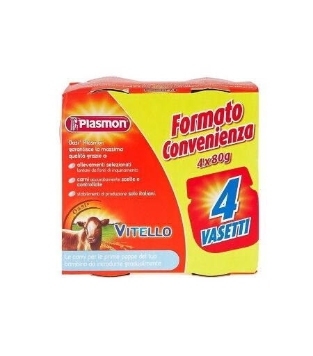 Plasmon VITELLO L'omogeneizzato con carne di vitello e cereale è indicato durante il periodo dello svezzamento ed ha un gusto delicato ed un sapore gradevole. Ingredienti Acqua di cottura; carne di vitello (30%); amido di mais; farina di riso (2%); succo concentrato di limone. Senza sale aggiunto. Caratteristiche nutrizionali per 100 g Valore Energetico353 kJ - 84 kcalGrassi di cui acidi grassi saturi3,6 g 1,7 g Carboidrati (p.d.) di cui zuccheri6,9 g 0,1 g Proteine (Nx6,25)6,0 g Sale0,008 g Conservazione Validità a confezionamento integro: 15 mesi. Formato 4 vasetti da 80 g Cod. 70901204 ...