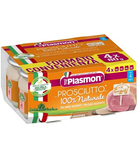 Plasmon PROSCIUTTO COTTO - Omogeneizzato indicato dal 4°/6° mese, salvo diversa indicazione del Pediatra. Ilprosciutto cotto (coscia di maiale non stagionata) contenuto all'internodell'omogeneizzato è appositamente studiato per l’alimentazione infantile:infatti, è privo di nitriti e nitrati, nonché… ...