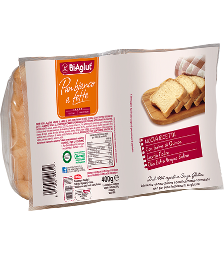 BiAglut - Pane bianco a fette - Descrizione Pane senza glutine a base di amido di mais con farina di riso e olio extra vergine di oliva. Alimento senza glutine specificamente formulato per persone intolleranti al glutine. Ingredienti Acqua amido di mais (23 6%) farina di riso (14 7%); addensant… ...