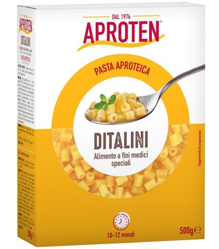APROTEN DITALINI - Descrizione La Pasta aproteica della linea di prodotti APROTEN, è caratterizzata da: contenuto basso di proteine, sodio, fosforo e potassio che la rendono indicata per la gestione dietetica di insufficienze renali (nefropatie); contenuto basso di tirosina e fenilalanina che la re… ...