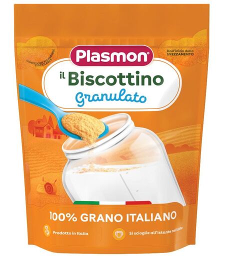 PLASMON - Descrizione Prodotto destinato all’alimentazione dei bambini dal 6° mese, salvo diverso parere del pediatra. - Ingredienti Farina di frumento (66%), zucchero, oli vegetali (palma certificato sostenibile, oliva), fibra solubile da mais, latte scremato in polvere, estratto di malto da orzo,… ...