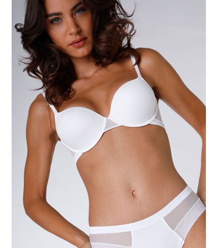 Reggiseno ferretto scollato leggermente imbottito Ultra Light bianco Massima invisibilità. È il reggiseno che indosso tutto l’anno stagione dopo stagione: in estate la sua leggerezza mi dona freschezza e comfort e mi fa sentire perfetta anche con le alte temperature, mentre in inverno sotto i maglioni diventa il mio segreto di bellezza perché dona una bella forma rotonda al seno. Posso adattare la posizione delle spalline a seconda dei miei desideri, per renderlo adattabile agli outfit. ...