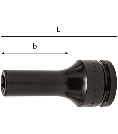Chiavi a bussola macchina lunghe TORX® Acciaio speciale altamente legato al Cromo Molibdeno Esecuzione fosfatata Utilizzare la spina di tenuta 235 MCA/8 (U02350207Q) per le misure da E18÷E24 Utilizzare l'anello di sicurezza 235 MDA/8 (U02350227Q) per le misure da E18÷E24 n° E24 b mm 70 L mm 100 ...