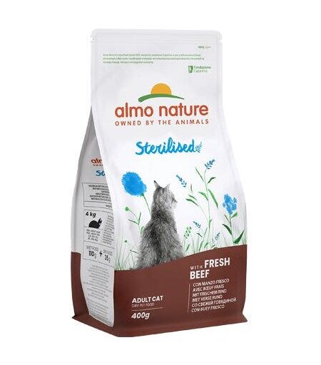 Alimento completo per gatti adulti. Grazie al basso contenuto di magnesio e ad un apporto di fibre adeguato per il controllo del peso, è un alimento ideale per gatti sterilizzati. Ricetta priva di OGM, coloranti artificiali o conservanti chimici. -Adulto 1+ anni. -Carne/pesce freschi. Componenti Manzo 33,5% (manzo fresco 26%, manzo disidratato 7,5%), pollo disidratato 14%, riso, granturco*, farina di riso integrale, grasso di pollo, proteine disidratate di suino 5,6%, proteine animali idrolizzate, cellulosa 0,4%, lievito, sostanze minerali, mannano-oligo- saccaridi 0,1%, inulina di cicoria fonte di FOS 0,1%, yucca schidigera 0,01%; additivi nutrizionali: vitamina A (3a672a) 19.500 UI/kg, vitamina D3 (3a671) 750 UI/kg, vitamina E (3a700) 400 mg/kg, vitamina B1 (3a821) 12 mg/kg, vitamina B2 14 mg/kg, vitamina B6 (3a831) 12 mg/kg, vitamina B12 0,15 mg/kg, vitamina K3 (3a711) 1 mg/kg, acido folico (3a316) 1 mg/kg,calcio D-pantotenato (3a841) 20 mg/kg, biotina (3a880) 0,5 mg/kg, ...