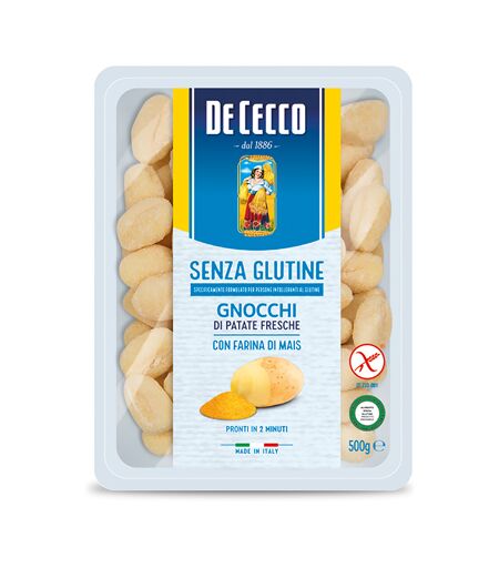 DE CECCO - SENZA GLUTINE GNOCCHI DI PATATE - Descrizione Gnocchi di patate fresche senza glutine. Prodotto specificamente formulato per personi intolleranti al glutine. Con farina mais. Ingredienti Purea di patate 75% (patate fresche 27% sul totale, acqua, fecola di patate 13,5% sul totale, fiocchi… ...