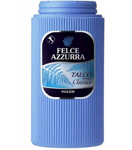 l talco è da sempre il simbolo del marchio felce azzurra. un prodotto totalmente naturale, senza aggiunta di sostanze conservanti né coloranti.l'unico ingrediente associato a questa soffice polvere minerale naturale è l'inconfondibile fragranza felce azzurra, il profumo del benessere. il talco, cosparso sul corpo dopo il bagno, lascia la pelle asciutta, vellutata e setosa. disponibile nel formato busta, barattolo o barattolo con piumino. ...