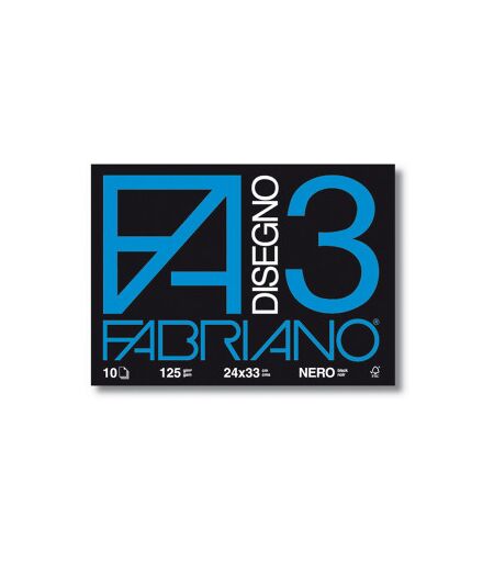 Album da disegno 10 fogli neri A4 24x33 cm, 125 g/m2. La qualita' delle materie prime usate e il suo nero profondo, che evidenzia assai bene i coloria applicati e presenta una notevole resistenza alla luce, fanno del Fabriano 3 un prodotto di alto livello, particolarmente consigliabile per le tecniche a pastello, tempera, china bianca. Confezione da 10 pezzi ...