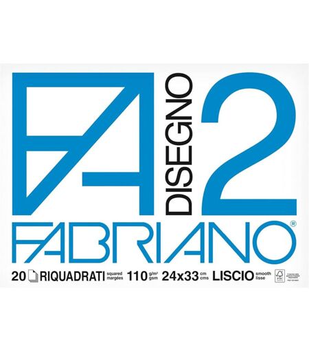 FABRIANO Blocco Disegno F2 24x33 cm 110 gr 20 Fogli Liscio per Matite e Acquerelli