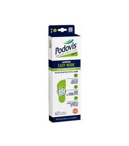 Podovis SOLETTE AIR & COMFORT CON CARBONE ATTIVO Studiate per garantire un'azione combinata, confortevole e traspirante. Per chi necessita di un'azione anti-odore senza rinunciare al comfort. Lo strato con carbone attivo neutralizza i cattivi odori prevenendone la formazione di nuovi. La struttura a nido d'ape favorisce il circolo dell'aria all'interno della scarpa lasciando il piede fresco e asciutto. Lo strato in schiuma garantisce un comfort a lunga durata, grazie alla sua azione di ammortizzamento. Il rivestimento in tessuto assicura un'ottima traspirabilità e un'azione anti-scivolo. Taglia S (36/40). Modalità d'uso Ritagliare le solette nella misura della propria scarpa seguendo la linea indicatrice. Prima dell'uso, assicurarsi che il prodotto possa essere correttamente inserito nella scarpa: se necessario rimuovere le solette esistenti e sostituirle con quelle Podovis. In caso di fastidio o disagio, rimuoverle per una o due ore, quindi inserirle nuovamente. Per il ...