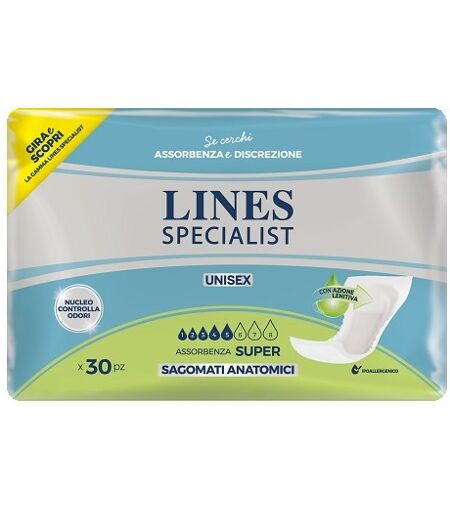 LINES SPECIALIST DERMA PROTECTION - Descrizione Super assorbente, super asciutto: la struttur a strati è studiata per aiutare a mantenere la pelle asciutta e sana e per offrire un'assorbenza veloce dei liquidi che rimangono così lontani dalla pelle. Lozione leniiva e protettiva: la lozione offre un… ...