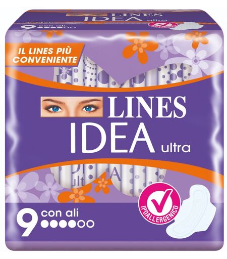 LINES IDEA Ultra Giorno Descrizione Assorbente esterno con ali. Ipoallergenico. Gli assorbenti Lines Idea offrono la protezione e il comfort lines e si prendono cura della pelle offrendo un'ottima sensazione di morbidezza. - Nuovo design ancora più femminile. - Offrono assorbenza sicura grazie al cuore assorbente Lines potenziato. - Comfort e discrezione assicurati in soli 3 millimetri di spessore. - L'esclusivo sistema Neutralizza Odori permette di avere più sicurezza. Formato Confezione da 9 assorbenti ...