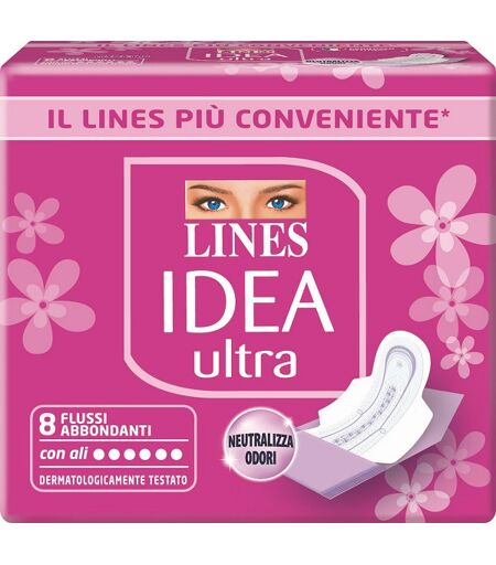Lines Idea Ultra Flussi abbondanti con ali Descrizione Gli assorbenti Lines Idea sono ipoallergenici e, con il 25% in più di cuore assorbente, garantiscono la massima assorbenza offrendo una continua sensazione di morbidezza sulla pelle. Dotati di un nuovo design super femminile assicura il massimo comfort e protezione per renderti libera di vivere la tua giornata anche con il ciclo. Gli assorbenti Lines Idea sono dotati di un esclusivo sistema Neutralizza Odori che, grazie alla molecola N3, intercetta le particelle di odore, le cattura e le neutralizza. Formato Busta da 8 assorbenti. Cod. 2740161 ...