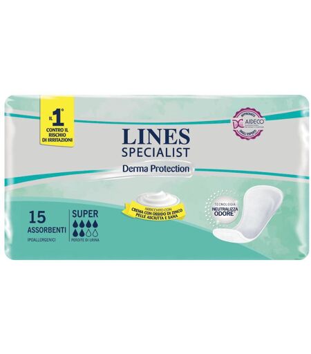 Assorbenti per incontinenza leggera, ipoallergenici, comfort e discrezione - DESCRIZIONE PRODOTTO: - - I LINES Specialist Derma Protection Super sono assorbenti monouso ideali per le perdite di urina leggere. Grazie alla loro struttura sottile ma altamente assorbente, offrono una protezione efficac… ...