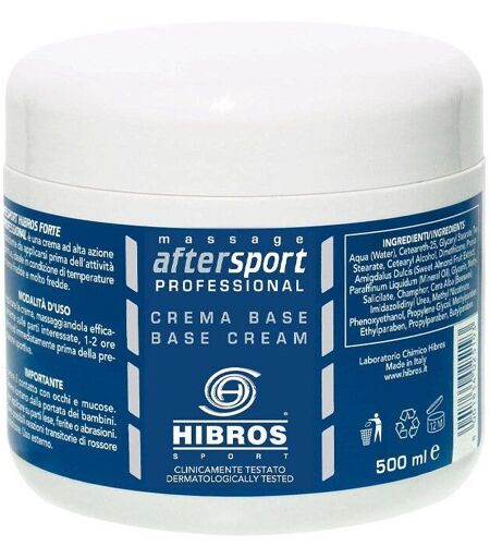 AFTERSPORT CREMA BASE HIBROS è una crema dermica molto scorrevole, ideale per un massaggio fluido, energico e di lunga durata. La presenza dell’olio essenziale di limone stimola la circolazione sanguigna e garantisce un’azione purificante, astringente, battericida e antisettica. AFTERSPORT CREMA BASE HIBROS ha azione lenitiva, nutriente, emolliente e lascia la pelle morbida, tonica e idratata. Privo di sostanze rinfrescanti. Prodotto non testato su animali. DERMATOLOGICAMENTE TESTATO Modalità d'uso Applicare la crema, massaggiandolo efficacemente sulle parti interessate, dopo la prestazione sportiva o come tonificante dopo la doccia. Formato 500ml. ...