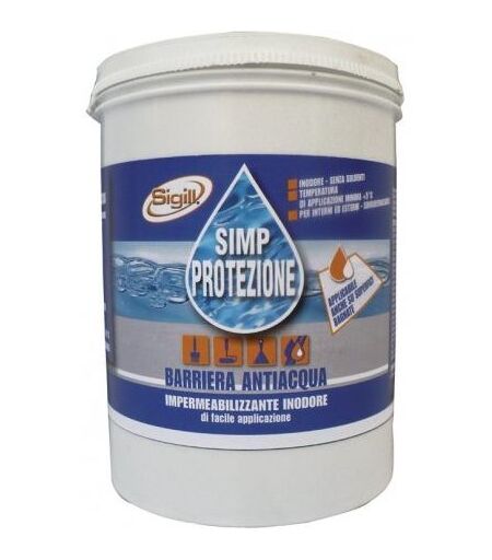 SIMP PROTEZIONECONFEZIONE DA 1kg SIMP-PROTEZIONE - BARRIERA ANTIACQUA • Aderisce su superfici umide• Inodore si può utilizzare anche in interni o al chiuso.• Verniciabile, nasce grigio standard ma si può colorare per ogni esigenza• L’acqua non compromette la polimerizzazione• Temperatura di applicazione +5° senza limiti di umidità relativa• Piastrellabile Impermeabilizzante di ultima generazione a base silanica ad alta resistenza di facile applicazione pronto all’uso e senza solventi quindi completamente inodore, elastico e sovra verniciabile. Applicabile su molteplici supporti anche umidi. Crea una barriera protettiva contro l’acqua ed è applicabile sia in interno che in esterno. Efficace fonoassorbente (-10 Db circa). Può essere applicato sui seguenti materiali: cemento, metalli, lamiere, plastiche, mattoni, polistirolo, fibrocemento, vecchie guaine bituminose, massetti nuovi o vecchi, pavimenti ,piastrelle, legno in genere e vetroresina . Non necessita di primer, basso consumo di ...