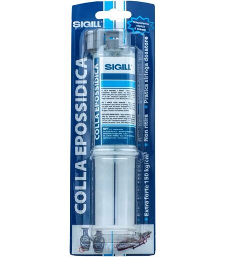 SIGILL Colla Epossidica, Adesivo Epossidico Bicomponente (a+b) Super Resistente fino a -40°C e +80°C, Resistente ad Acqua e Agenti Chimici, Trasparente e