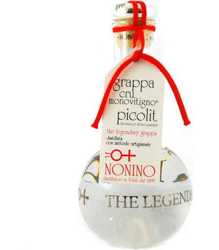 L’arte della distillazione è privilegio della famiglia Nonino fin dal 1897. Qualità, innovazione, ricerca, professionalità e amore per il proprio lavoro sono il segno di distinzione della storica distilleria friulana. La Grappa Monovitigno Picolit è ottenuta in quantità limitata distillando la vinaccia di uve selezionate di uva Picolit Cru Friuli Selezione Nonino, imbottigliata nelle tradizionali ampolle soffiate a mano volante. Va servita a 12°C circa o in un bicchiere ghiacciato aperto a corolla di tulipano. Una grappa aristocratica, elegante, cristallina. Bottiglia 50 cl ...
