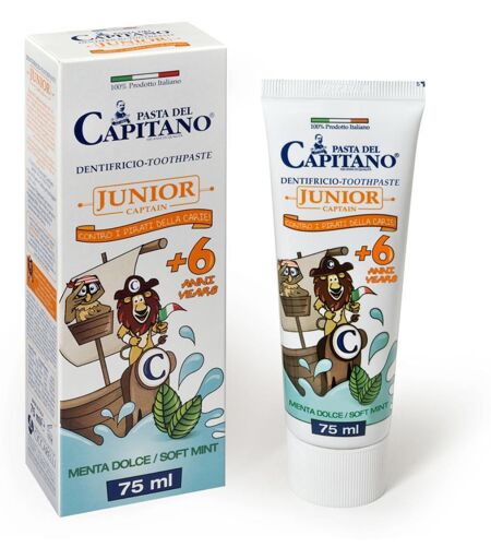 PASTA DEL CAPITANO JUNIOR - Dentifricio Junior +6 anni. Dentifricio in gel per prevenire la placca e la carie, studiato appositamente per i denti e le gengive dei bambini sopra i 6 anni. Un delicato gel, al gusto menta dolce, arricchito con: Sali di Fluoro e Calcio, per proteggere dalla carie. Beta… ...