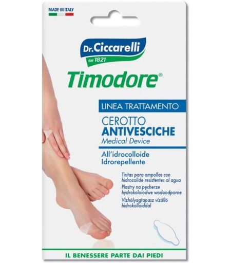 Timodore - CEROTTO ANTIVESCICHE - DORSO E PIANTA DEL PIEDE - Descrizione Dispositivo medico di classe IIA. Cerotti per vesciche all'idrocolloide, aiutano l'eliminazione della vescica, assorbendo i liquidi in eccesso e creando un microambiente ottimale per una rapida soluzione del problema. Proteggo… ...