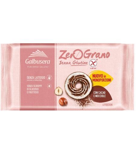 Galbusera - ZeroGrano - CONO CACAO E NOCCIOLE - Descrizione Frollini senza glutine con cacao e nocciole Specificamente formulato per persone intolleranti al glutine. Ingredienti Farina di mais, zucchero, farina di riso, olio di girasole alto oleico 11%, amido di tapioca, cacao 5%, uova fresche 4,5%… ...
