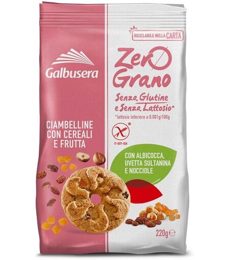 Zero Grano CIAMBELLINE CON CEREALI E FRUTTA Descrizione Frollini ai cereali con frutta specificamente formulati per persone intolleranti al glutine. Ottimi per la prima colazione o per una pausa pomeridiana. Ingredienti Farina di mais 20%, farina di riso 16%, olio di girasole alto oleico, zucchero, fecola di patate, albicocche candite in cubetti 7% (albicocche, zucchero, sciroppo di glucosio-fruttosio; correttore di acidità: acido citrico), farina di riso 7%, frutta 6% (uva sultanina 4,6%, nocciole 0,6%, mela disidratata 0,5%), fibra di mela 5%, amido di tapioca, agenti lievitanti (carbonato acido di sodio, carbonato acido di ammonio, difosfato disodico); emulsionante: lecitina di girasole; sale, aromi naturali; antiossidante: estratto di rosmarino. Può contenere uova, latte, soia e altra frutta a guscio. Senza glutine e senza lattosio. Caratteristiche nutrizionali Valori medi per 100 g per biscotto (7,3 g) Energia 1.969 kJ/469 kcal 144 kJ/34 kcal Grassi di cui ...