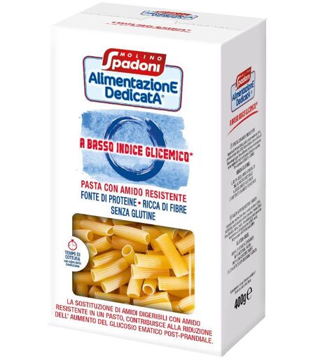 AlimentazionE DedicatA MACCHERONI A BASSO INDICE GLICEMICO - Descrizione Pasta con amido resistente. Fonte di proteine. Ricca di fibre. La sostituzione di amidi digeribili con amido resistente in un pasto, contribuisce alla riduzione dell'aumento del glucosio ematico post - prandiale. Il 69,9% degl… ...