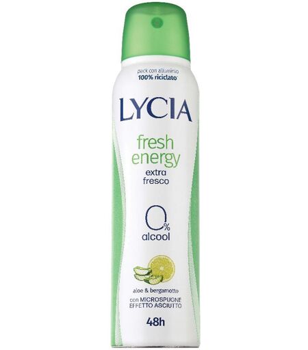 LYCIA - fresh energy 0% alcool - Descrizione Deodorante spray Lycia fresh energy. 48 ore di extra protezione. Formula con microspugne effetto asciutto che regola la sudorazione ed elimina i cattivi odori. Grazie all'antibatterico selettivo, contrasta i batteri responsabili dei cattivi odori, rispet… ...