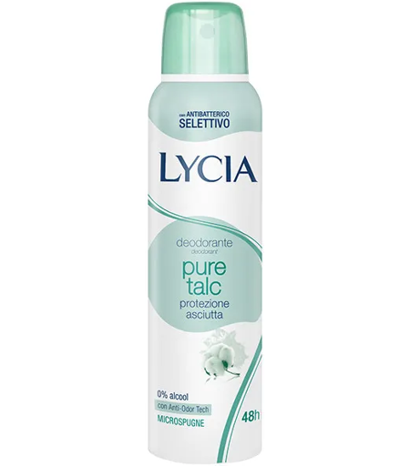 Deodorante Spray Protezione 48H Effetto Asciutto, Antibatterico Selettivo, 0% Alcool - DESCRIZIONE PRODOTTO: - Lycia Pure Talc è un deodorante spray ad alta efficacia che garantisce 48 ore di protezione contro i cattivi odori. La sua formula innovativa con microspugne effetto asciutto regola la sud… ...