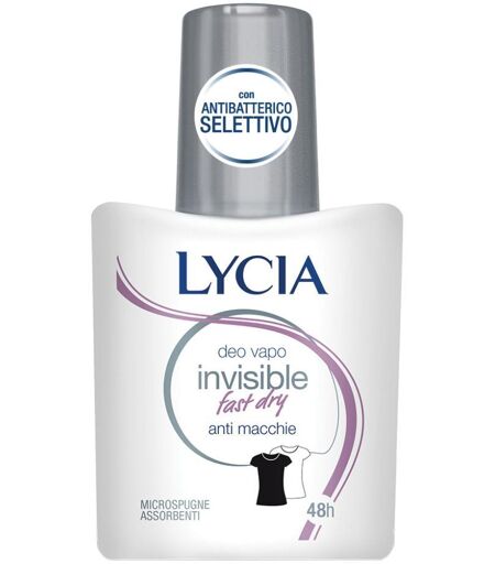 LYCIA - invisible fast - dry - Descrizione Deodorante vapo Lycia invisible fast dry. 48 ore di extra protezione. Formula con microspugne effetto asciutto che regola la sudorazione ed elimina i cattivi odori. Grazie all'antibatterico selettivo, contrasta i batteri responsabili dei cattivi odori, ris… ...