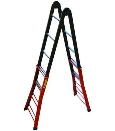 telescopica, struttura in acciaio verniciato - progettata e costruita secondo le normative e le leggi vigenti in Italia, DLgs 81/08, - portata max Kg.100 - sezione profilo esterno mm.56x25 - sezione gradino mm.30 - dotata di cerniera manuale con sblocco a manovella ...