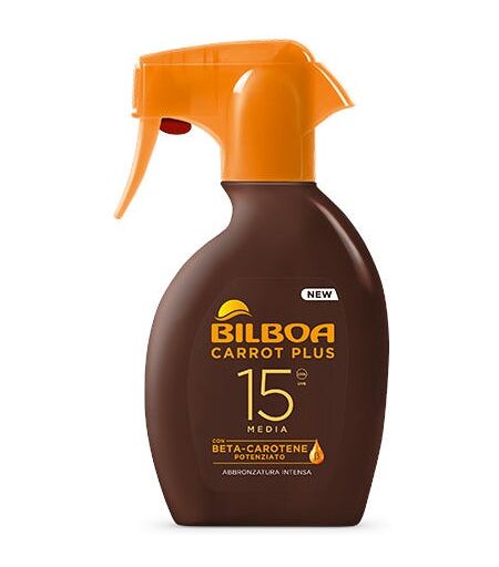 Carrot Plus Spray Trigger SPF15 Spray solare abbronzante protezione media. Con Beta-carotene potenziato, stimola la naturale pigmentazione della pelle per un’abbronzatura uniforme e dorata a lungo Filtri fotostabili UVA/UVB di ultima generazione per una protezione solare avanzata. Inconfondibile profumo di Bilboa Carrot, l’autentico profumo d’estate. Ideale per pelli scure o già abbronzate. Azione Dona alla pelle un’abbronzatura intensa e duratura e la protegge dai raggi solari. Resistente all’acqua. Dermatologicamente testato. Modalità d'uso Agitare prima dell’uso. Applicare il prodotto abbondantemente prima dell’esposizione al sole. Riapplicare frequentemente, specialmente dopo i bagni e l’uso dell’asciugamano. Non esporre neonati e bambini alla luce diretta del sole. Evitare l’esposizione al sole nelle ore più calde. Evitare il contorno degli occhi: nel caso di contatto risciacquarli immediatamente. Usare un fattore di protezione adeguato alla pelle e all’intensità del sole. ...