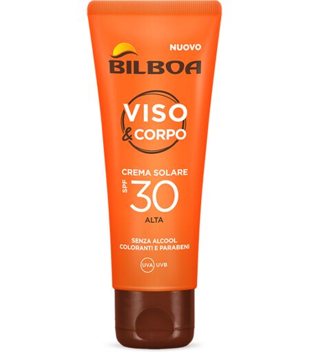 BILBOA Viso & Corpo SPF 30 Descrizione Crema solare per viso e corpo SPF 30, protezione alta, formato da viaggio. Senza parabeni e alcool. Conservazione Validità post-apertura: 12 mesi. Formato Tubo da 75 ml. Cod. R970378 ...
