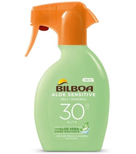 Bilboa Aloe Sensitive Per Pelli Sensibili Bilboa aloe sensitive per pelli sensibili è uno spray super idratante con Aloe Vera dalla texture fresca e leggera. 0% Alcool. Avvertenze Uso esterno. Evitare il contatto con gli occhi. Riapplicare spesso, specialmente dopo aver sudato, essersi bagnati o usato l’asciugamano. Non esporre i bambini alla luce solare diretta. Non restare esposti troppo a lungo al sole. Un’esposizione eccessiva costituisce un grave rischio per la salute. Formato 250ml. ...