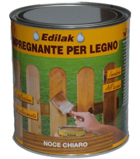 Impregnante per legno noce chiaro edilak inodore all'acqua, ideato appositamente per il trattamento di protezione e di decorazione del legno posto all'esterno anche in ambienti particolari quali mare ed alta montagna. Di facile applicazione e asciugatura veloce. eventuale diluizione: 5% Su legno nuovo: 2-3 mani. Su legno già verniciato da rinnovare: 1-2 mani. Applicare il prodotto a pennello, ogni mano ogni 3/4 ore Resa media: 6/9 mq con 750ml (variabile in base al tipo di legno ed alle sue condizioni) ...
