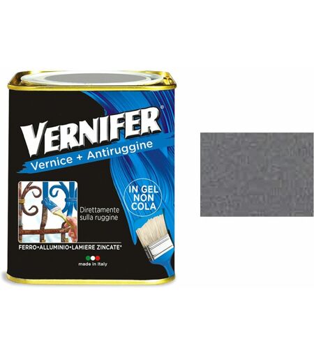 vernifer vernice antiruggine antichizzata Arexons Vernice Antichizzata Vernifer prodotta da Arexons . Un prodotto che unisce smalto e anticorrosivo, e dona un effetto antico alle superfici in ferro, alluminio o zinco. Caratteristiche: Smalto + Antiruggine Tipo di legante: Resina alchidica Finitura: antichizzante In gel, non cola Uso interno ed esterno Campi di impiego: ferro, ferro arrugginito, alluminio, legno, cemento, zinco (conisgliato una mando di fondo aggrappante) Non necessita di un fondo anticorrosivo Formato: 750 ml Descrizione: La Vernice Antichizzante Vernifer di Arexons dona una finiura antichizzata, unendo le proprietà di un ottimo smalto a quelle tipiche di un fondo antiruggine. Questa vernice è strutturata in forma di gel morbido, garantendo una facile applicazione senza colature e assicurando un'ottima pennellabilità. Vernifer è la soluzione ideale quando si cerca di donare un aspetto antico, vintage a superfici in ferro o alluminio, come ringhiere o cancelli, sia per ...