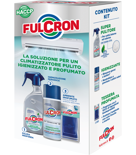 Kit Pulizia Climatizzatori Fulcron Pulitore + Igienizzante 2 Tessere Profumate Incluse ...