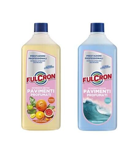 Fulcron pavimenti profumati Detergente neutro. Formula professionale, profumato ad asciugatura rapida, profumo potenziato con una speciale molecola che elimina i cattivi odori. Per tutti i materiali come ceramica, gres porcellanato, marmo, parquet, cotto, linoleum e pavimenti in genere anche trattati con cere. Idoneo per l’applicazione dei piani HACCP. Flacone 1 Lt. Brezza Marina ...