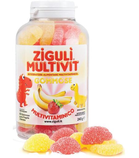 ZIGULÌ MULTIVIT - GOMMOSE - Descrizione Integratore alimentare in gommose, consigliato nei casi di ridotto apporto con la dieta o di aumentato fabbisogno fisiologico. Gusto fragola e banana. Ingredienti Vitamina C (acido ascorbico), vitamina E (tochopheryl acetate), vitamina B3 (niacina), vitamina … ...