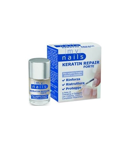 my n a i l s KERATIN REPAIR FORTE - Trattamento per unghie fragili, deboli e sfaldate. Rinforza, ristruttura, protegge. A base di Cheratina e Ossigeno, con Cisteina, Zinco e Complesso vitaminico. Modalità d'utilizzo Il prodotto può essere utilizzato anche come base prima della stesura dello smalto.… ...