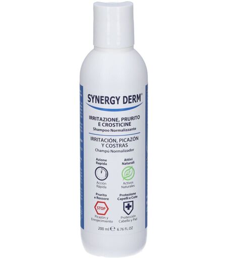 Synergy Derm Irritazione, Prurito e CrosticineSynergy Derm Shampoo di Planet Pharma è uno shampoo multiattivo studiato per contrastare irritazioni, rossore, prurito e crosticine del cuoio capelluto causati da sensibilizzazione, desquamazione o rinnovamento cellulare eccessivo. Grazie alla sua formula con ingredienti naturali e sostanze attive, svolge un’azione protettiva e trattante rapida. Favorisce l’eliminazione di squame e crosticine, riduce la desquamazione e la forfora, allevia sin dal primo utilizzo i sintomi di irritazione, prurito e rossore, e normalizza la produzione di sebo lasciando i capelli morbidi e protetti. Modo d'uso:Distribuire uniformemente una piccola quantità di prodotto sul cuoio capelluto inumidito, massaggiare e risciacquare. Ripetere l'applicazione lasciando agire per 2-3 minuti e risciacquare abbondantemente. Usare per 2-3 volte a settimana per minimo 6 settimane. Ingredienti: Per la lista completa degli ingredienti si prega di fare riferimento alla confezione. Avvertenze: Evitare il contatto con gli occhi. In caso di contatto sciacquare immediatamente con acqua fresca. Tenere lontano dalla portata dei bambini. ...