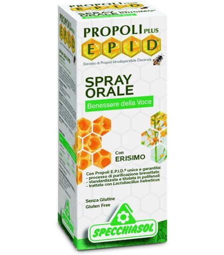 PROPOLI PLUS E P I D SPRAY ORALE - Integratore alimentare con Propoli Epid ed erisimo in spray, appositamente formulato con particolare attenzione verso le problematiche legate all’abbassamento e/o perdita della voce. Non contiene glutine. Ingredienti Propoli EPID® (propolis) estratto idroalcolico … ...