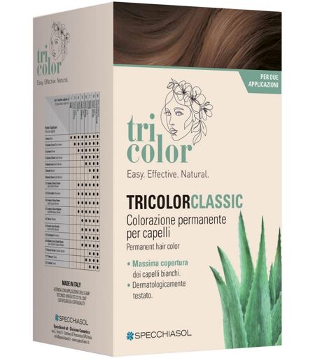 SPECCHIASOL Tricolor Classic - Colorazione permanente - Descrizione Tricolor Classic è una linea di colorazione innovativa formulata con materie prime di alta qualità per rispettare i capelli e il cuoio capelluto e donare luminosità e brillantezza ai capelli colorati. I vantaggi: - Massima copertur… ...