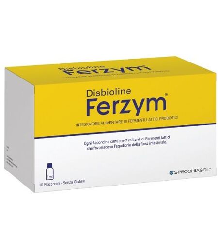 Specchiasol Disbioline Ferzym 10 FlaconciniIntegratore Fermenti ProbioticiA cosa serve Disbioline FerzymDisbioline Ferzym è un integratore alimentare di Fermenti lattici probiotici con Pappa reale, Fibre vegetali e succo del frutto di Sambuco che aiuta a favorire le naturali ...