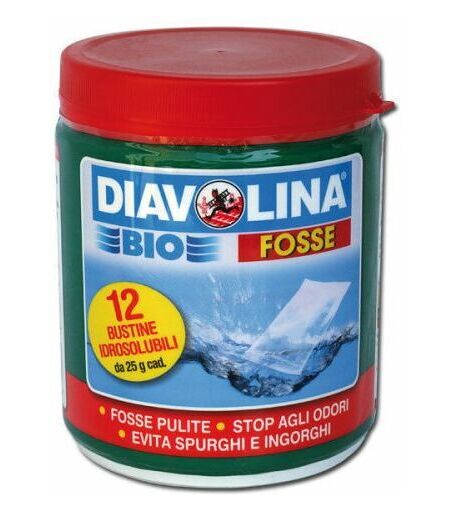 DIAVOLINA BIO FOSSE Diavolina bio fosse,pulisce le fosse biologiche eliminando gli spurghi.Barattolo di 12 bustine da 25 gr cad. ...