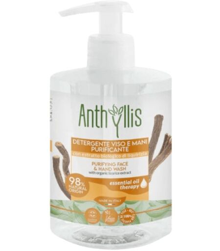 Detergente viso e mani purificante - Anthyllis Con estratto biologico di liquirizia ad azione antibatterica Arricchito con aloe vera e olio essenziale di arancio biologico Formula naturale al 98% e certificata biologica e vegan Il Detergente viso e mani purificante - Anthyllis è studiato per la detersione quotidiana delle pelli sensibili, garantendo freschezza e protezione. La sua formula delicata combina ingredienti naturali e biologici per rispettare l’equilibrio cutaneo, trasformando un semplice gesto di cura in un vero rituale di benessere. Estratto di liquirizia biologica: noto per le proprietà antibatteriche e purificanti, contribuisce a proteggere la pelle. Succo di aloe vera biologico: idratante e addolcente, aiuta a mantenere la pelle morbida e lenita. Olio essenziale di arancio biologico: dona un profumo fresco e avvolgente, con un effetto aromaterapico rilassante. Dermatologicamente testato su pelli sensibili e con valori di Nichel, Cromo e Cobalto ...